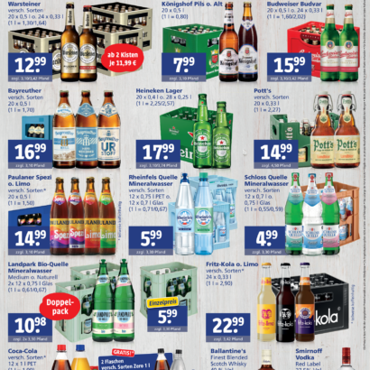 Hier sind unsere Angebote vom 19.01.26 bis 24.01.26 Unser Wein der Woche kommt von der Nahe: G. Schlink Grauer oder Weisser Burgunder Potts <versch. Sorten> 14,99€ Heineken <20×0,4l oder 28×0,25l> 17,99€ Coca Cola <versch. Sorten +2 Flaschen Gratis>…